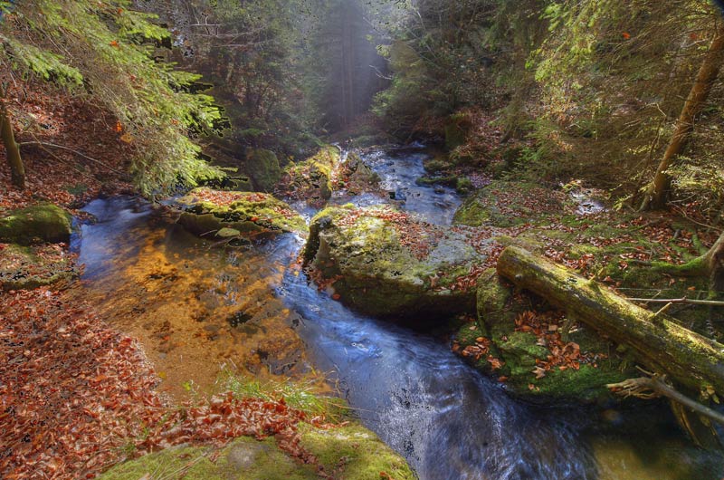Der Wetterbericht mit der Aussicht auf strahlend schönes Herbstwetter veranlasste uns, der Ysperklamm einen Besuch abzustatten. Bei Hochnebel von zu Hause weggefahren erreichten wir die Klamm um ca. 10:30 Uhr bei tatsächlich strahlendem Wetter und wolkenlosem Himmel und begannen sofort mit dem Aufstieg.